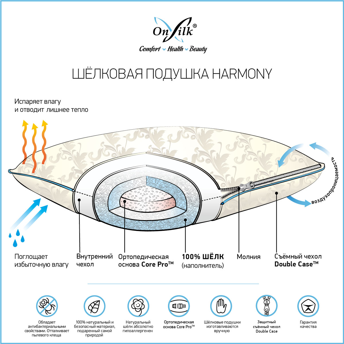 Подушка шелковая Onsilk Harmony XS 50x70см